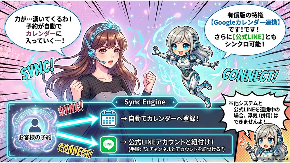 Googleカレンダー連携(有償版特典): 予約が入ると自動でカレンダーに登録されます。