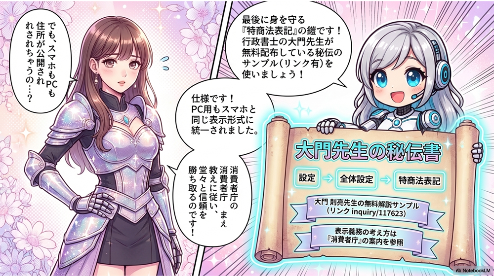 - [ 特商法表記を大門先生のサンプルで整えた! ]